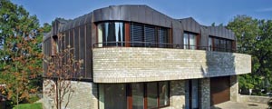 Pohled z jižní strany. Dům má oproti běžným stavbám se sedlovou střechou zcela jiné proporce: přízemí je mírně potlačeno, do podkroví se vejdou dvě podlaží. Střecha má sklon 55° a je opláštěna titanzinkovým plechem. Podél jižní fasády je ještě naplánována pergola   Dům má oproti běžným stavbám se sedlovou střechou zcela jiné proporce: přízemí je mírně potlačeno, do podkroví se vejdou dvě podlaží. Střecha má sklon 55° a je opláštěna titanzinkovým plechem. Podél jižní fasády je ještě naplánována pergola