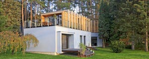 Podobu a dispozici domu si navrhl sám majitel. Firma Sruby Pacák pak standardním tesařským způsobem zhotovila vše včetně střechy a masivních interiérových dřevěných prvků. Dřevěné trámy obvodových stěn domu mají certifikát státní zkušebny, dokládající, že vzhledem k jejich tloušťce obvodové stěny nevyžadují dodatečné zateplení.
