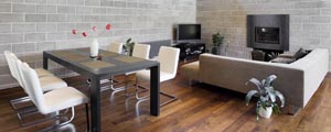 Srdce  bytu tvoří polyfunkční místnost, v níž je přes jídelní stůl propojený obytný prostor s kuchyní. Denní světlo, jehož je zde dostatek, dovolilo v interiéru použít tmavší barvy